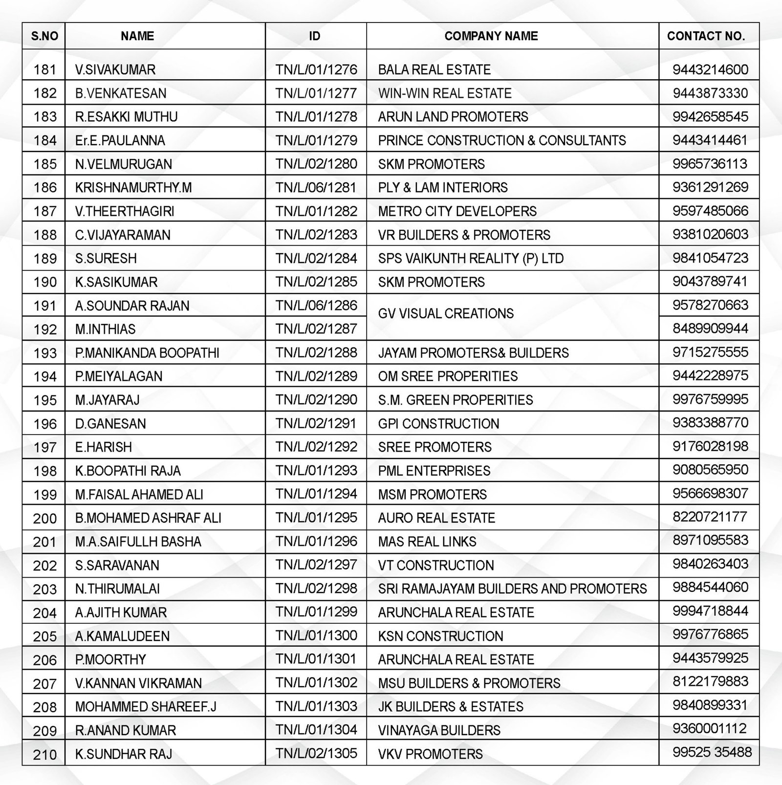 State Board – BUILDERS & PROMOTERS